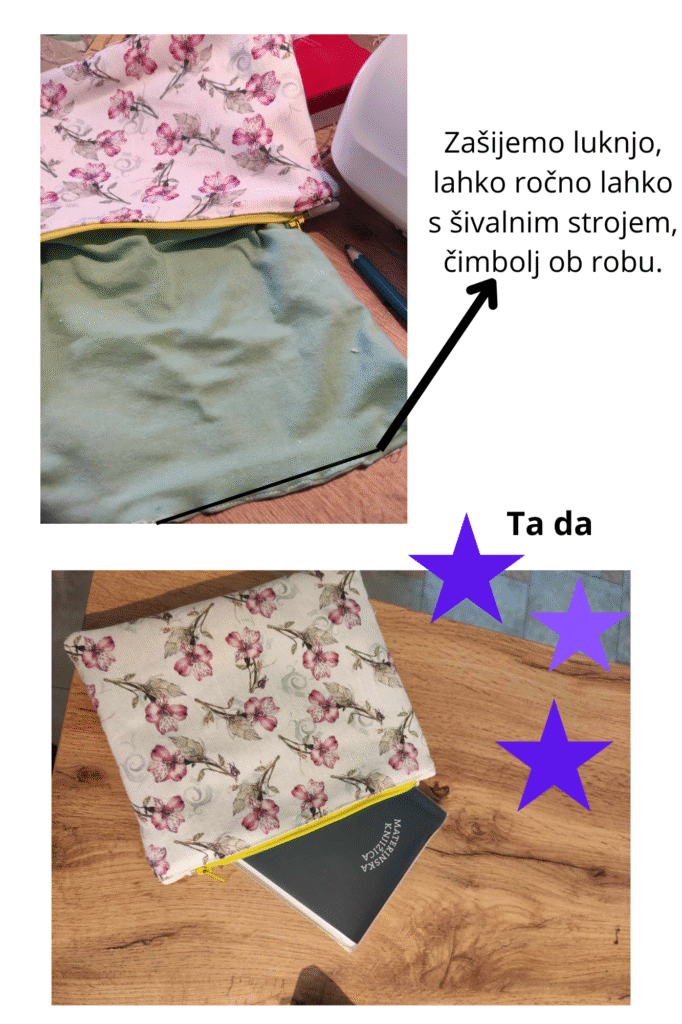 Ko sem dobila materinsko knjižico sem dobila idejo, da jo zaščitim. V torbici imam različne stvari in lahko se zvije na robovih, sem si rekla. Potem pa sem imela tudi za kakšne dokumente prostor iz pregledov.
